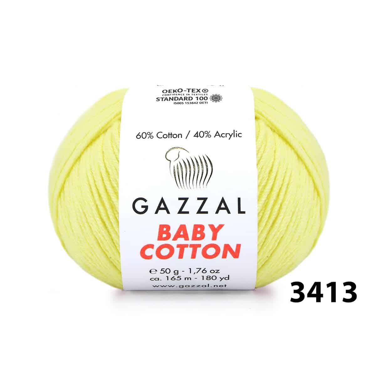 Gazzal Baby Cotton boasts a composition of 60% cotton and 40% acrylic, offering a harmonious blend of natural softness and durability.